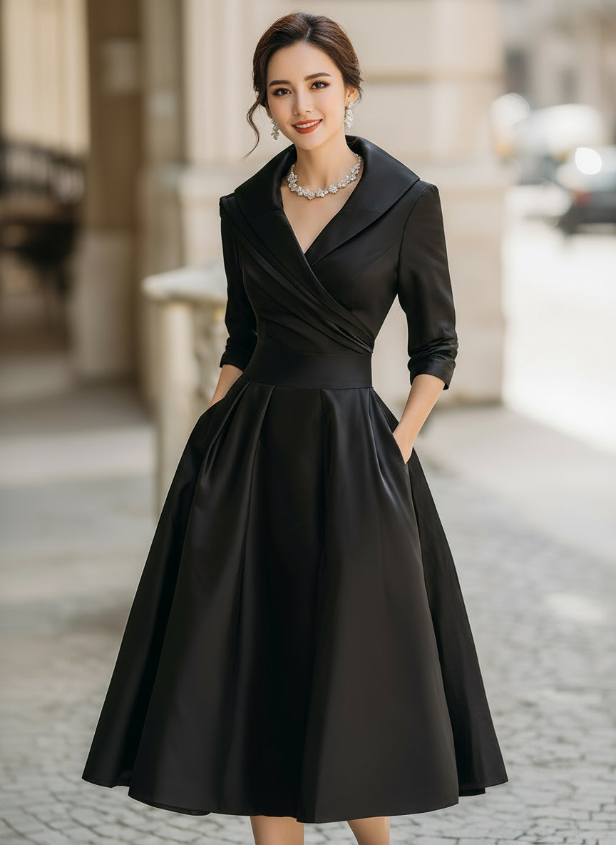 • Classic Cut that Emphasises the Figure – a fitted bodice and A-line skirt highlight natural curves.