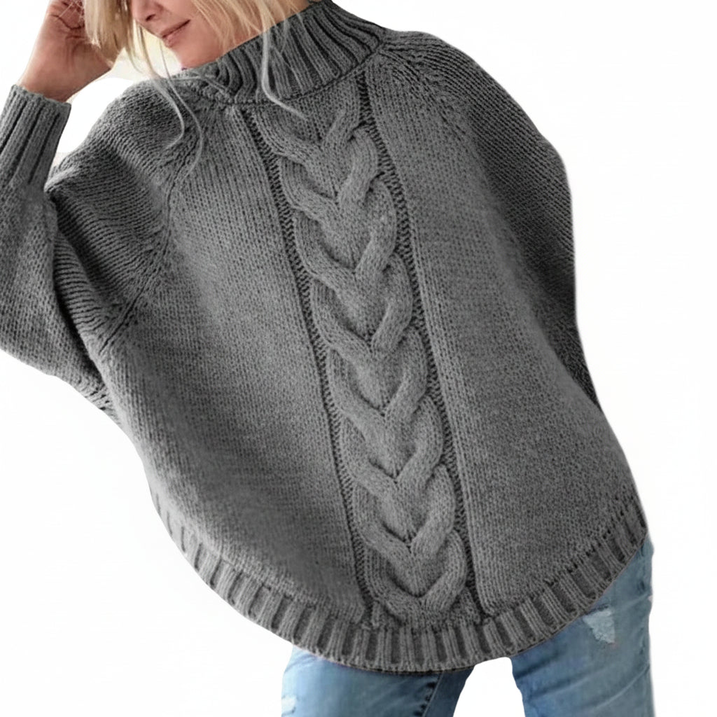Vintage-Inspired Cable Knit Sweater for Women – Relaxed Fit & High Neck
