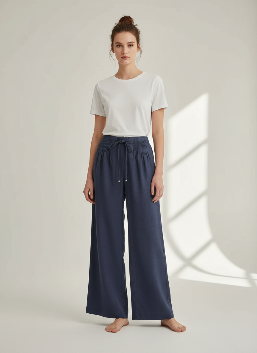 Camille | Wide-leg Pants in Cotton and Linen Blend